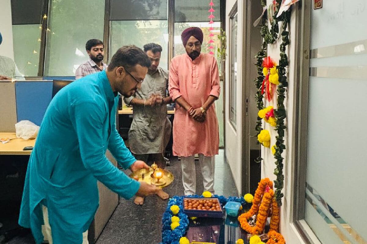 Look at these pictures that capture the essence of our celebration! We dressed up in colorful traditional clothes, drew beautiful rangolis, and danced our hearts out. The festive spirit brought us together like one big family. Our shared laughter and joy created unforgettable memories. We’re not just a company; we’re a close-knit community.